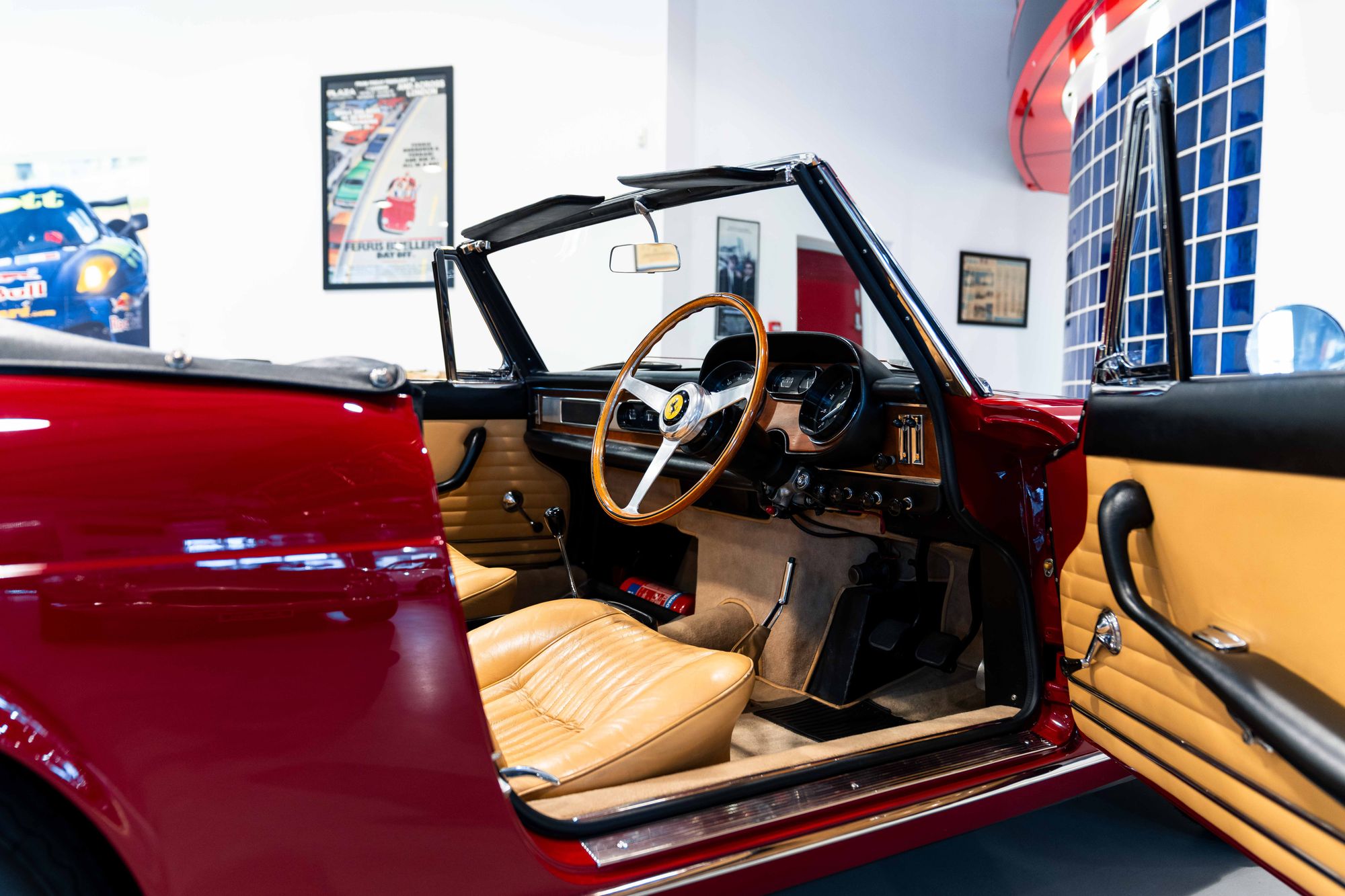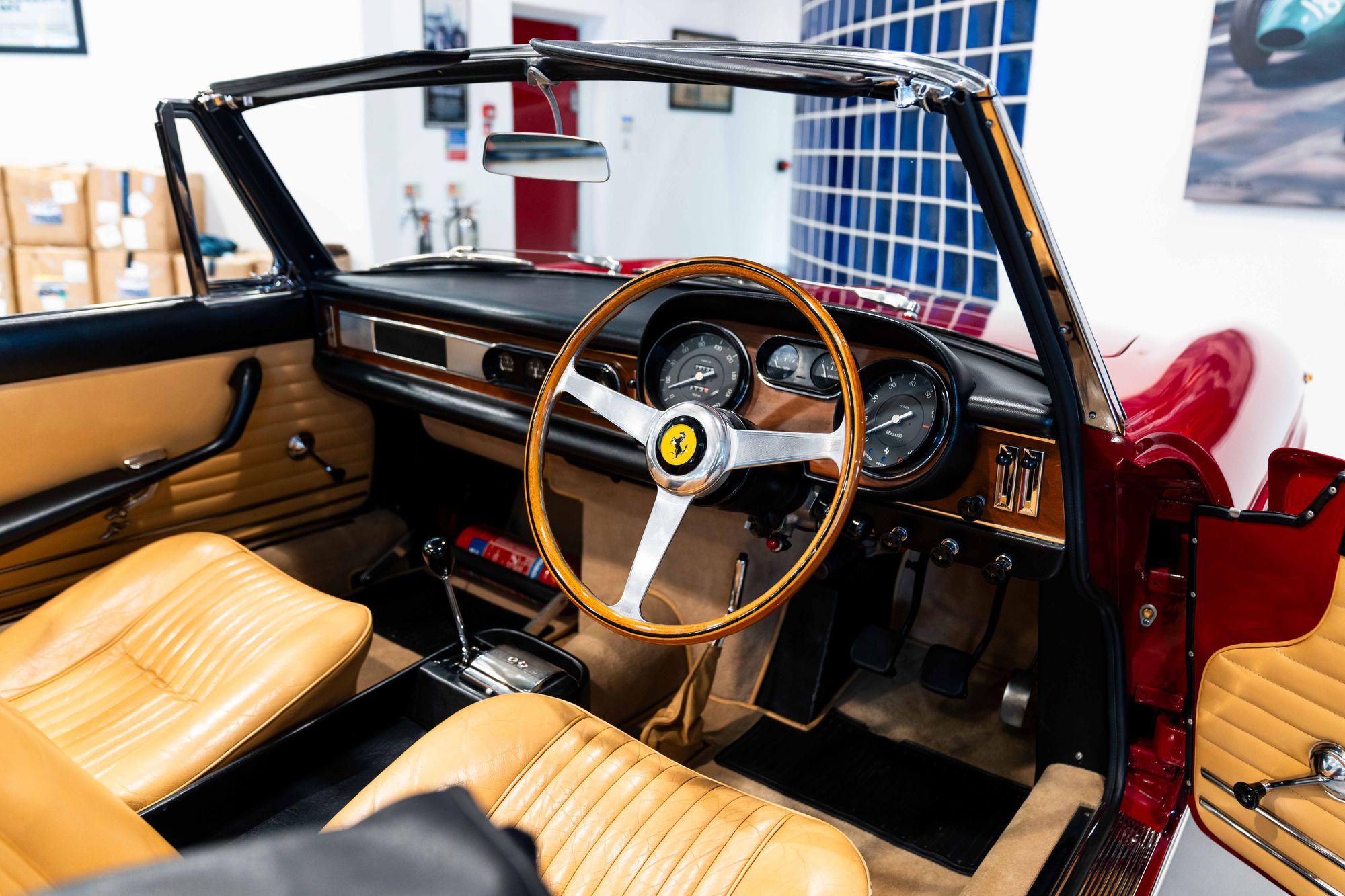 This very special example is the 61st of 200 cars built and the 7th of just 14 produced in right-hand drive for the UK market. Originally finished in Rosso Cina with beige Connolly hide, it was delivered new on 29th July 1965 to Colonel Ronnie Hoare’s Maranello Concessionaires, before being sold shortly afterwards, on 13th August, to its first owner, Charles Lucas.
