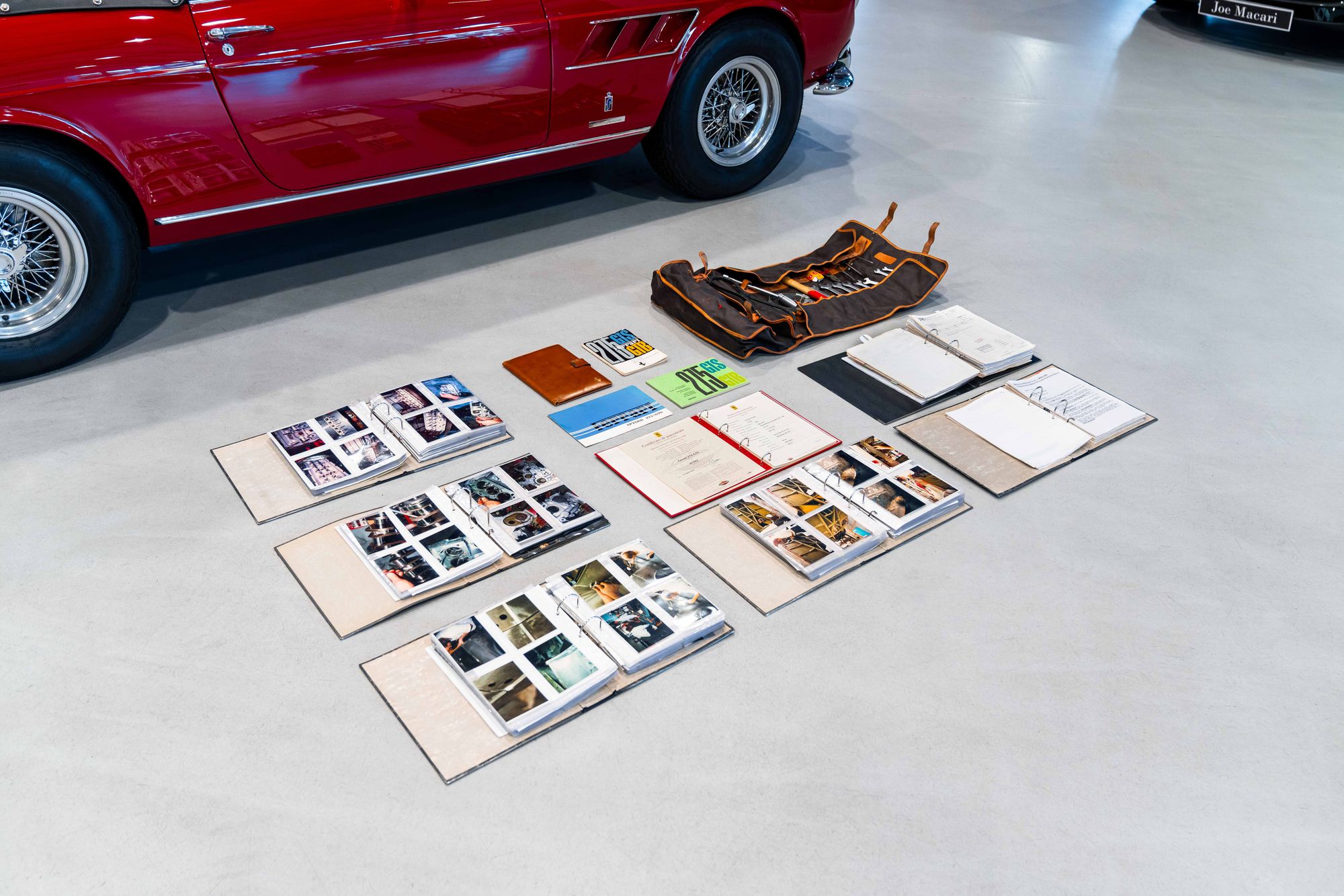 The car has been awarded Ferrari red book Classiche Certification, verifying complete matching numbers for the body, engine, and gearbox. It is further offered with an extensive history file, several photo albums documenting restorations, original factory brochures, an owner’s wallet, and its original tool roll.