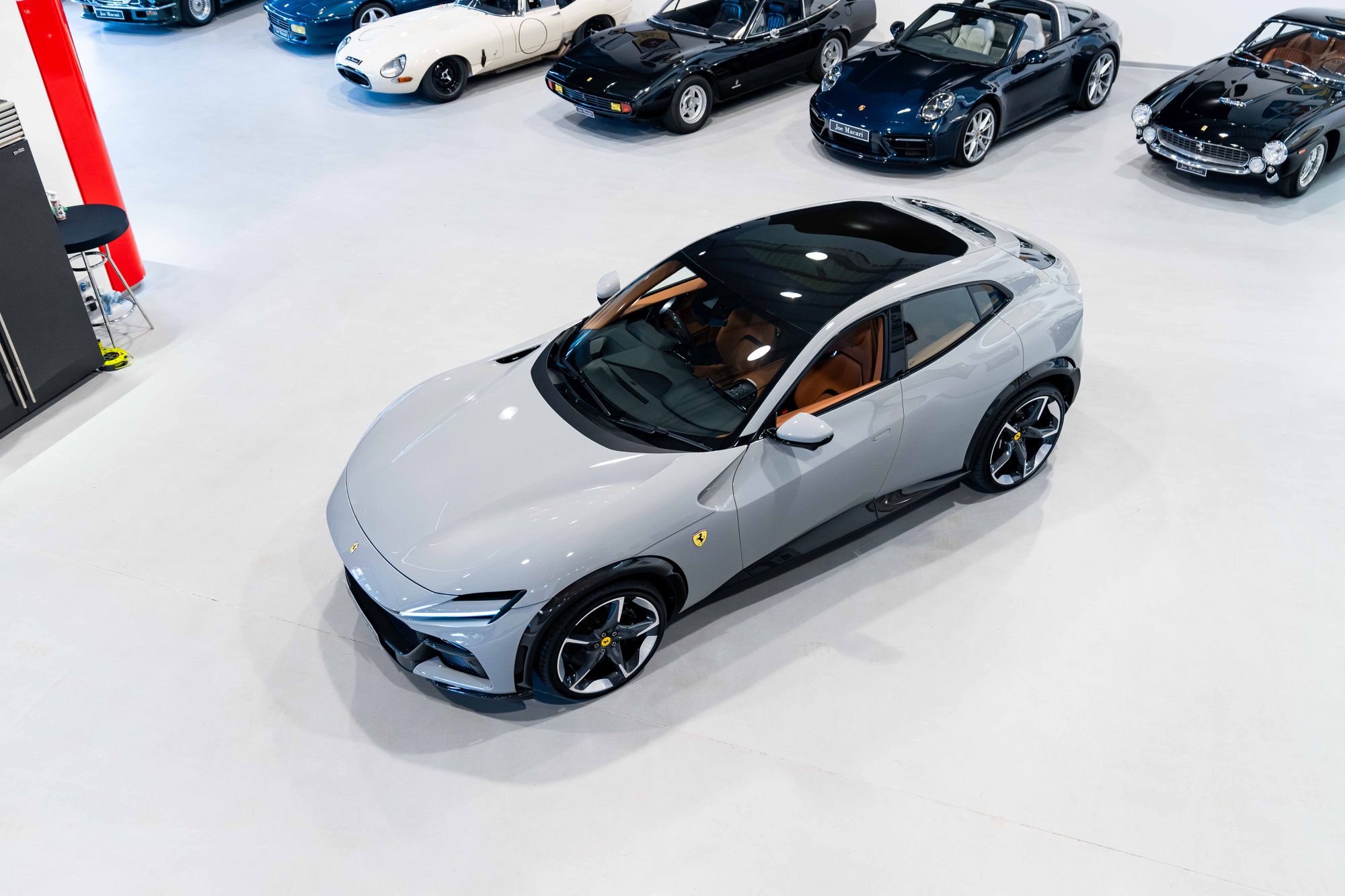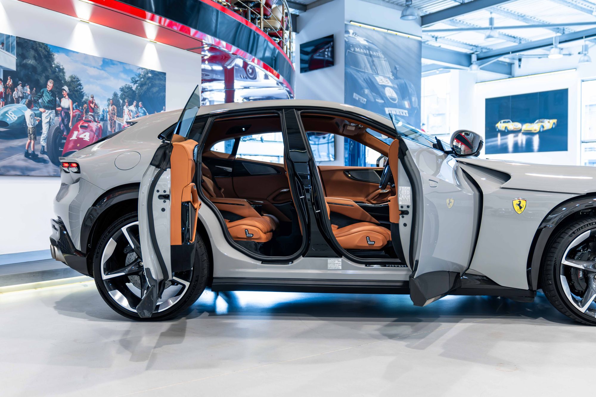 Low mileage, highly specified Purosangue finished in Extra-Range Grigio Squalo over Cuoio.